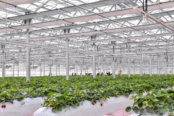ストロベリーファームの広さは約3000平方メートル。通年イチゴ狩りができるハウスは首都圏で初めてだという。