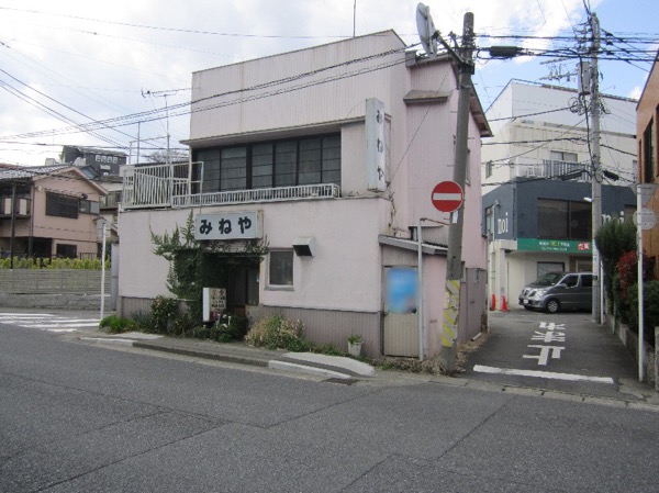 みねやは百合ヶ丘駅近くで営業している料理屋さん。開店当初から周囲は道路に囲まれていた。元芸能人の店主は地元では有名な人物だったとのこと