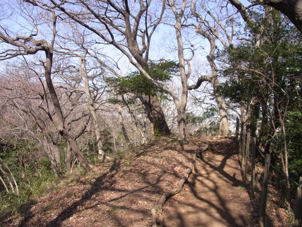 公園を囲む山道に設けられた散策路は展望台が作られ、江の島方面や富士山方面を望むことができる。