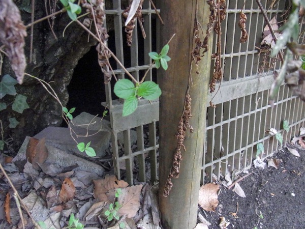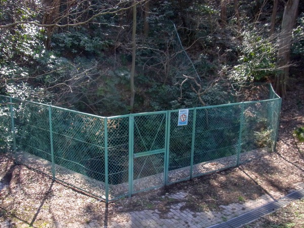 新林公園の山際にある柵のされた場所