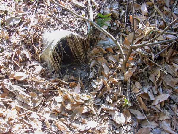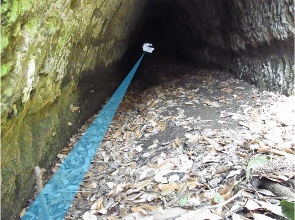 そこで山の反対側に向かうと、やはり穴が開いていた。ここから流れる水が先ほどの場所に溜まっているようだ。