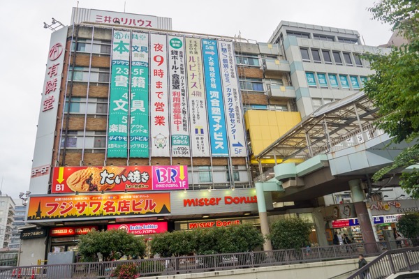 南口を出るとすぐに、フジサワ名店ビルが見える。