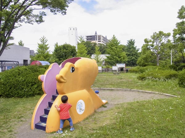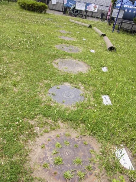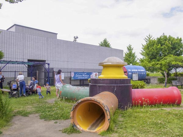 また遊具はあるものの、下水道施設と関連した展示物が置かれているのは、PR目的の屋外展示スペースの役割があるからだろうか。
