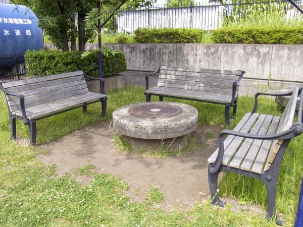 「広場」とあるように、普通の公園ではないようだ。下水道施設内にあり、スロープの上の少し高い場所に作られているのも印象的だ。