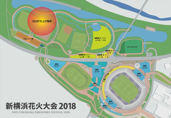 打ち上げ場所は日産スタジアム横の新横浜公園