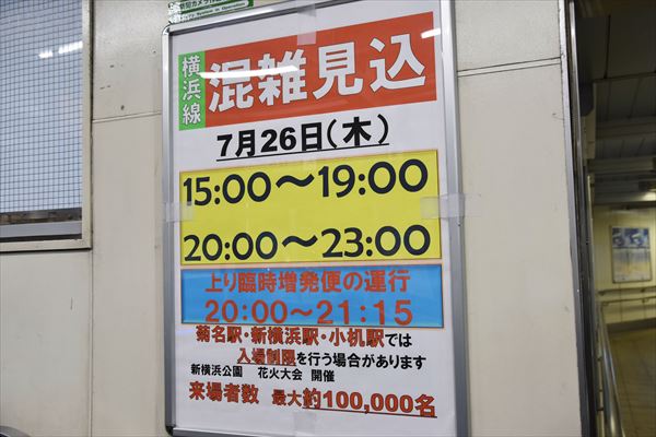 新横浜では初めての花火大会ということで、混雑を見込んだ態勢がしかれていた。
