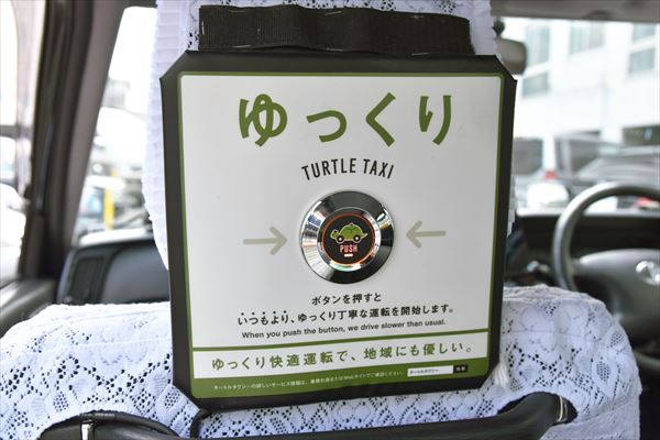 タートルタクシーはお客さんのアンケートから生まれたタクシーで、「タクシーに乗る時に急いでいるか?」という質問に対して、約7割が「急いでいない」という回答だったという。反対にタクシーの運転手さんは「お客様は急いでいる」という認識があり、そういった認識のズレを逆手にとって誕生した。