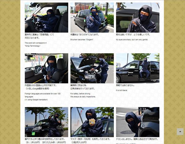 設定が細かいのもこだわりの一つ。実際に忍者に話を聞いてみると、「身軽さを重視して手裏剣は2枚までしか持っていないでござる。語尾は『~ござる』で統一し、素早い動きと、人目につかぬよう車体から出ないように心がけているでござる」と、もはやタクシードライバーとは思えないコメント。
