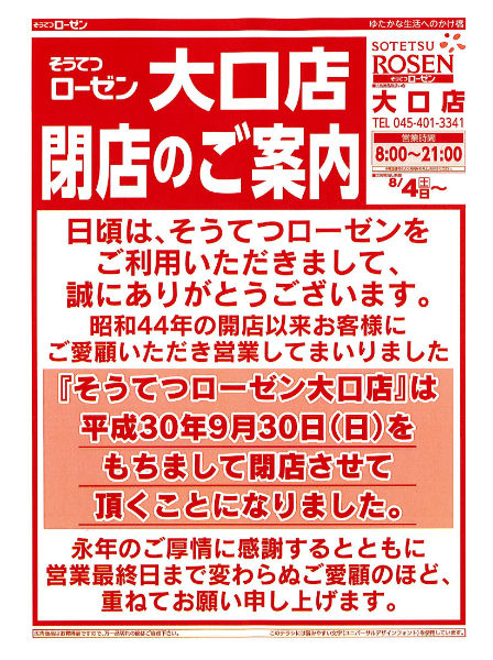 2018年9月30日をもって閉店する相鉄ローゼン大口店。