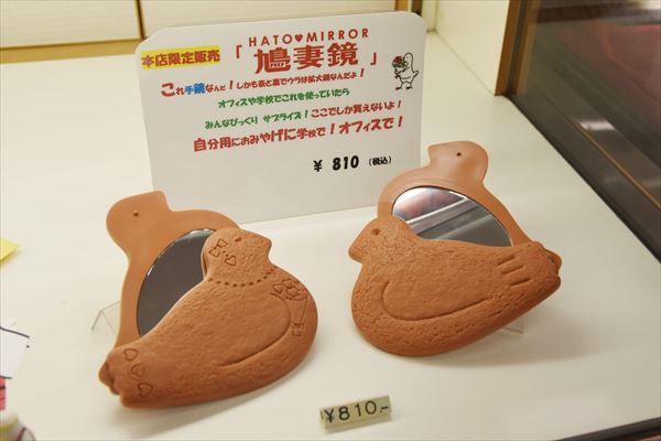 鎌倉時代の歴史書「吾妻鏡」をもじった「鳩妻鏡(810円)」も社長発案!