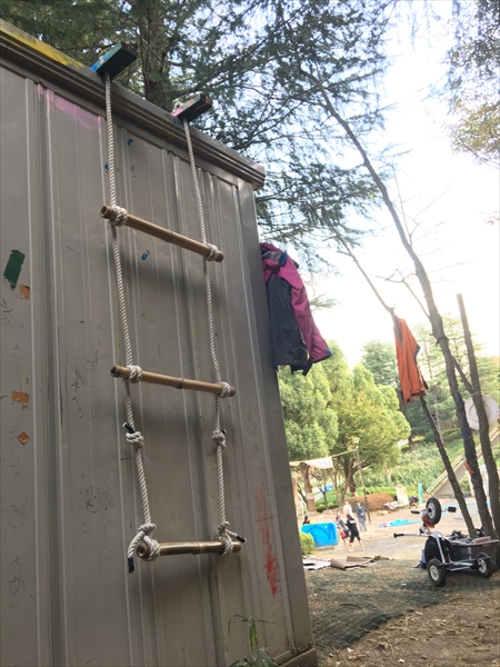 例えば、公園内の物置には縄梯子を使って誰でも上がれるようになっているが、わざと縄梯子の段差を広くして使いにくくしている。