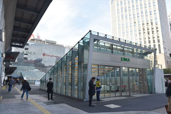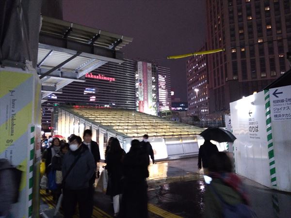 ジョイナスの仮通路も変更となり、髙島屋方面へ向かう地上への通路に加え、鶴屋町方面への通路も開通。