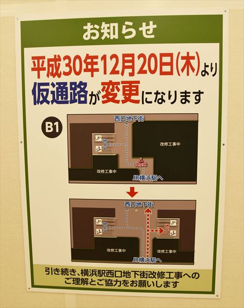 2018(平成30)年12月20日、約1年間かけて改修工事を行っていた横浜駅西口の通路が新設された。