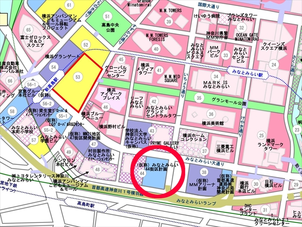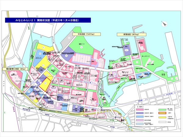 現在のみなとみらい21地区開発状況(横浜市HPより、クリックで拡大)