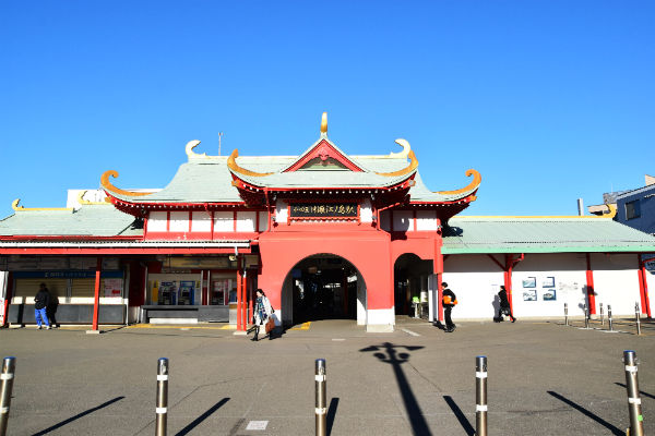 片瀬江ノ島駅と言えば、何と言ってもこの「竜宮城」のようなデザインが特徴。訪れた者には非日常のワクワク感を提供し、地元の方には愛着のある街の駅として、1929(昭和4)年4月1日より歴史を刻んできた。