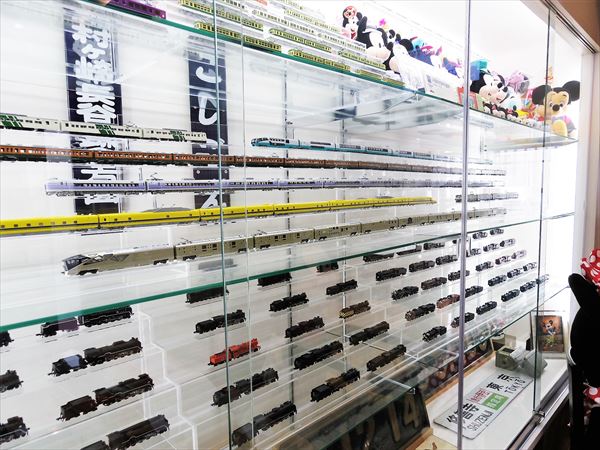 お店に入って正面いっぱいに鉄道模型たちのディスプレイが!ミッキーたちもうれしそう