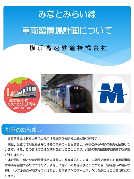 みなとみらい線と東急線は相互直通運転を行っており、みなとみらい線の運転士や乗務員も東急に委託している。車両を東急の車庫に置くのは理にかなっているように思えるが、その借地契約が2019(平成31)年1月で切れてしまうことから、代替の施設が必要になった、というのが今回の車両留置場計画の経緯だ。2017(平成29)年度から、留置場の建設に向けた調査がスタートしている。