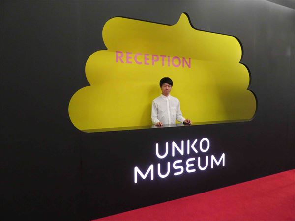真面目な表情のお兄さんが迎えてくれるが、一歩中に入ると、ピンクのうんこ帽をかぶったテンションMAXのお姉さんが登場。