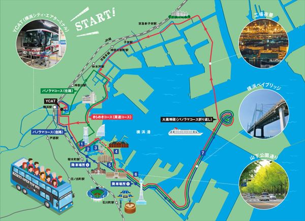 (※復路の「ホテルニューグランド付近」「桜木町駅付近」で下車が可能)