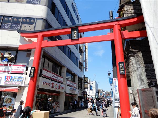 入り口には「八幡宮近道」と掲げられた赤い鳥居がドンッと構える