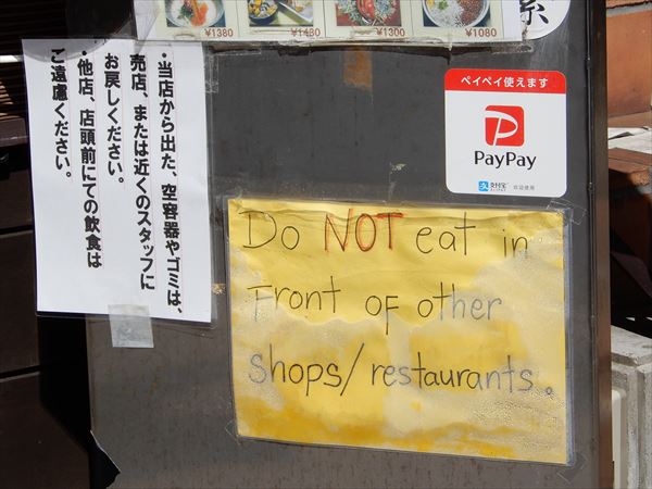 通りを歩いていて目についたのは、食べ歩きやゴミのポイ捨てへの注意喚起をうながす掲示板の多さだった。