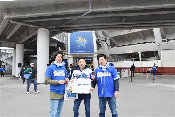皆さん気前よくアンケートに協力してくださり、中には「寒いのに大変ですね」とベイスターズの選手も食べているという塩パンをくれた方や、「記念撮影してもいいですか?」とスケッチブックを持って笑顔を向けてくれた名古屋のベイスターズファン、「いつからハマスタって呼ぶようになったんだっけ・・・」と真剣に考えてくれたカープファンもいた。