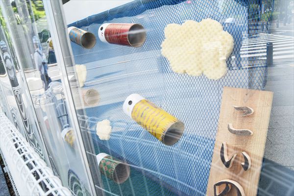 工事現場で使用している資材で「こいのぼり」の飾りつけをしていた