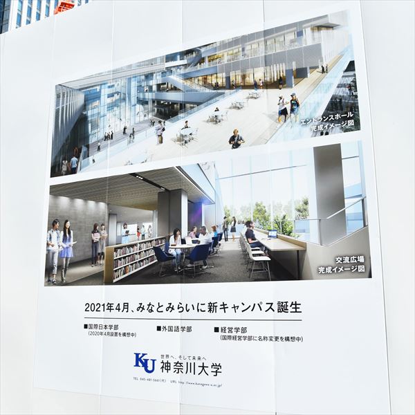 地上22階、地下1階の「神奈川大学みなとみらいキャンパス」は、みなとみらい21中央地区で初めて開設する大学キャンパス。国際日本学部(2020年4月設置を構想中)、外国語学部、経営学部(国際経営学部に名称変更を構想中)のグローバル系学部を集約し、2021年4月に約5000人の学生が新たなスタートを切る予定。