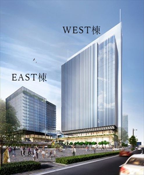 オフィスを中心に、商業施設、ホテル、にぎわい施設、オープンイノベーションスペースなどを有した2棟のビル(WEST棟・EAST棟)で構成(延べ面積約18万平方メートル)。