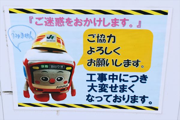 同ビルの工事現場は、建設を手がける大成建設によって所々に京急愛を感じさせる施しがされており、一目で「ここは京急の本社ができる」と分かる。