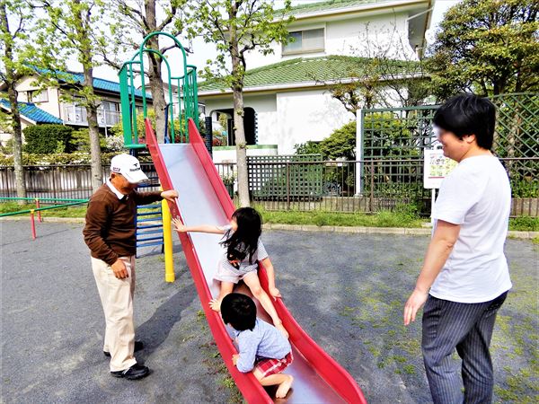 実の祖父と孫たちが遊んでいるとしか見えない光景