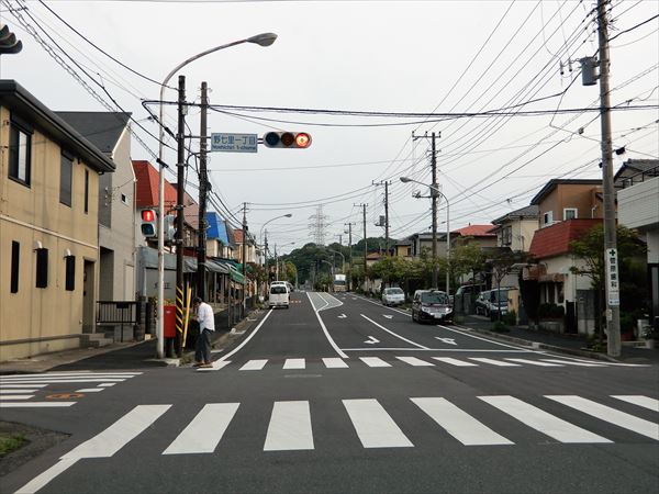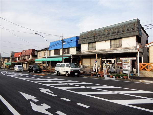 民家が並ぶ「野七里一丁目」交差点付近。商店街はどこだ?