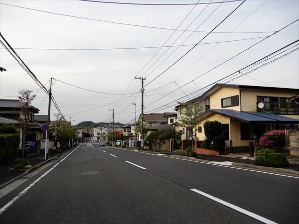 桂台同様、丘陵地に広がる野七里1丁目の住宅地。ここは、西側に大きな「上郷西ヶ谷(かみごうにしがや)ハイツ」の団地群があり、東側に戸建て住宅が並ぶのが特徴的だ。