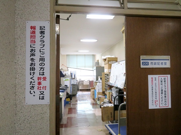 市役所2階には記者クラブ関係者が使用する市政記者室がある