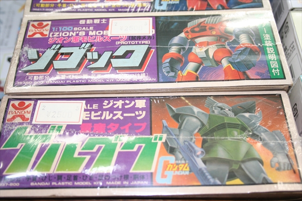 店内には戦闘機や戦車、軍艦、レーシングカーなど、子どもの頃に見かけた懐かしいキットが並ぶ。ちょっと待て。よく考えるとこれはおかしい。いまどきのプラモデル店なら、ガンダムをはじめとしたアニメ系のキットが目立つところに並んでいるのが普通だ。ガンプラも少しだけあるのだが、メーカーであるバンダイのロゴマークが今のものと異なる。マニアには、たまらないレア物だ。