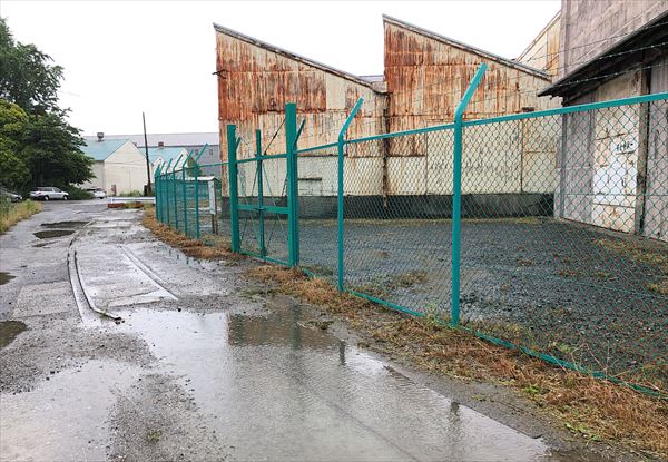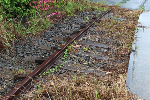 「国有地」の看板の立つ古びた倉庫群の前を通り過ぎ、レールは続いていく。