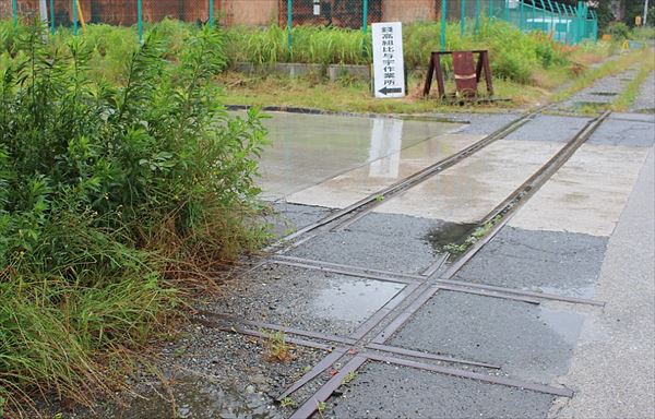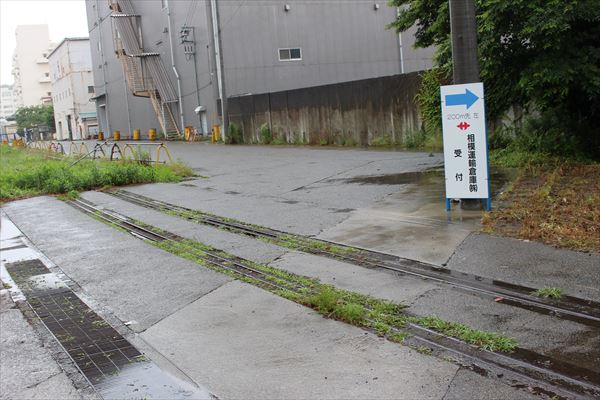 十字交差のレールは奥へと続いているが、ここから先は相模運輸の敷地内のため立ち入ることはできない。