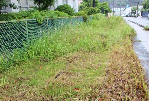 背が高い草むらの中はどうなっているか確認できなかったが、横須賀港湾合同庁舎の建物前までくると、また様子が変わってくる。