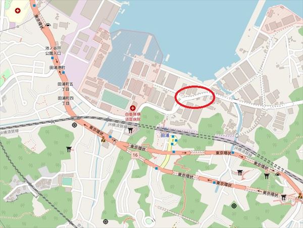 今回投稿のあった十字交差、平面ダブルクロスはJR横須賀線田浦駅から分岐して長浦港へと向かうルートにある。田浦駅北口を出て右手に見える倉庫街を目指して歩くと、すぐに歩道に線路が残されているのが見えてくる。駅近辺は、米軍施設や自衛隊施設が多く、一般人が立ち入ることができない場所も多い。