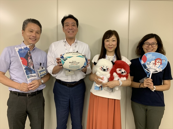 その横浜市でラグビーワールドカップを推進する部署、市民局スポーツ統括室ラグビーワールドカップ2019推進課を訪ねた。お話を伺ったのは松田博之(まつだ・ひろゆき)さん、守屋大介(もりや・だいすけ)さん、畠山久子(はたけやま・ひさこ)さん、山本佳世(やまもと・かよ)さん。