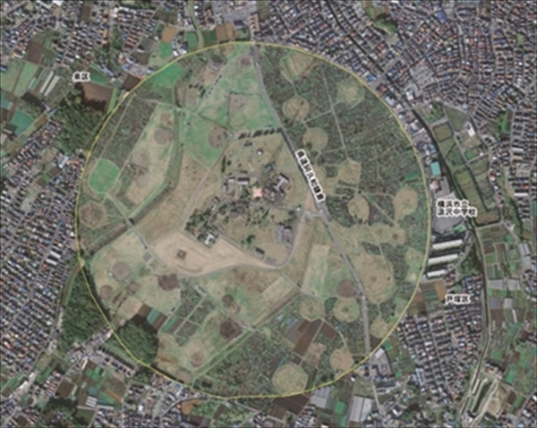 ここで深谷通信所跡地についておさらいをしておきたい。深谷通信所跡地は、地下鉄ブルーライン立場駅から徒歩20分ほどの場所に位置する、面積は約77万平方メートル、直径約1kmの円形が特徴の広大な土地だ。
