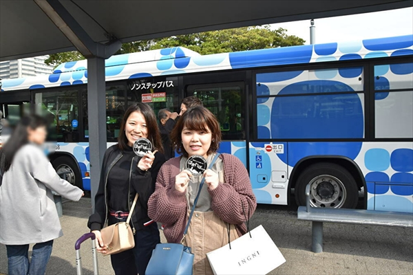 バス停に並んでいた姉妹にお話を伺ってみた。「はまれぽを見て、ハンマーヘッドに行きたくて来ました! 桜木町駅から歩いていくのは遠いので、ピアラインは便利だと思います。今は無料だし!」と妹さん。なんとも嬉しい言葉にテンションの上がる筆者。すると、「仙台に出張していたのですが、妹に行きたいって誘われて今朝帰ってきました(笑)」と、お姉さん。何とも仲の良い姉妹でほっこりした。