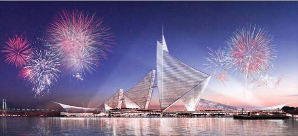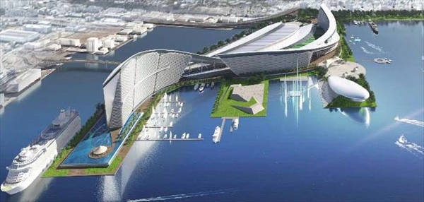山下ふ頭に設置予定のカジノを含む統合型リゾートのイメージ図(横浜市資料より)