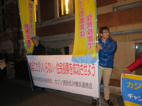 「私(鶴見区在住)は応募しましたが、外れたのでここに立っています。市は、カジノで目論んでいる1200億円の税収を子ども達に使うと言ってます。しかし、学校では子ども達に、ギャンブルや賭博はダメと教えているのに、なぜ、それが横浜で許されるのですか。市は財政難だから皆、賭博をやって儲けさせてくださいと言ってるわけです。日本人は勤勉だといわれていますが、横浜市はその根本(精神)を壊そうとしているのです」