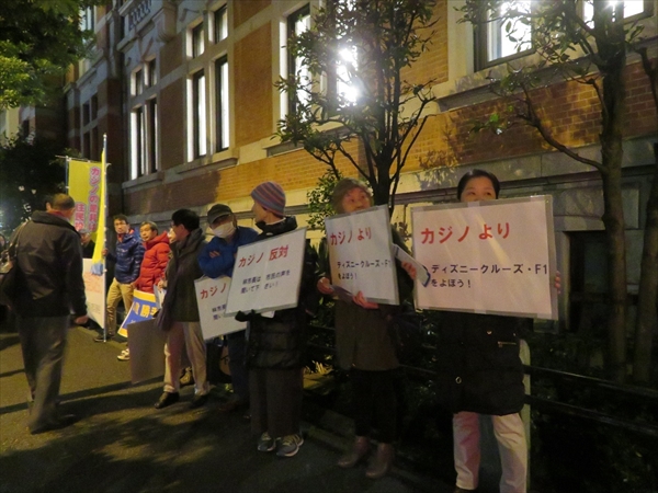 反対派の中に「カジノよりディズニークルーズ・F1をよぼう!」のプラカードを掲げている女性達(50~60代)がいた。「プラカードに記されている文言は、カジノに反対している横浜港ハーバーリゾート協会の訴えていることですが・・・」と水を向けると、こう話してくれた。