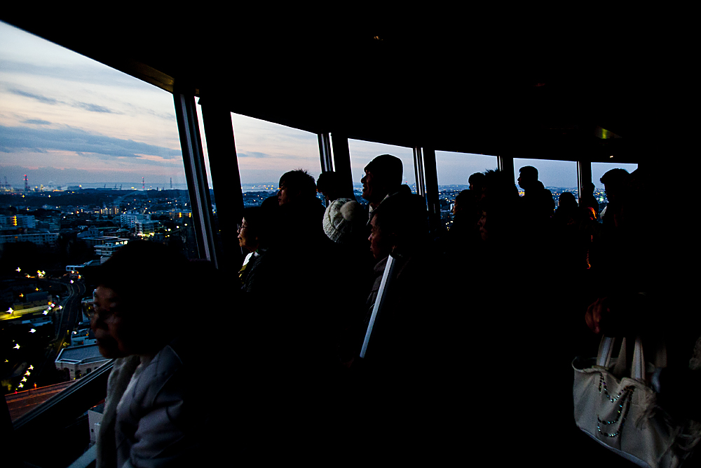 床に座っていて気づいたのは、横浜マリンタワーはときどき少し揺れるということ。立っていると気づかないのだが、お尻を床に付けていると少しの揺れでも感じるのだ。