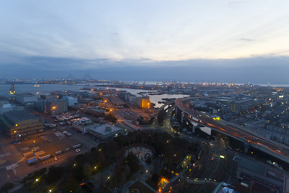 朝5時、横浜マリンタワーに到着。この時間には大晦日に輝いていたイルミネーションも消えていて闇の中に黒々と佇むタワーは少し不気味に感じる。