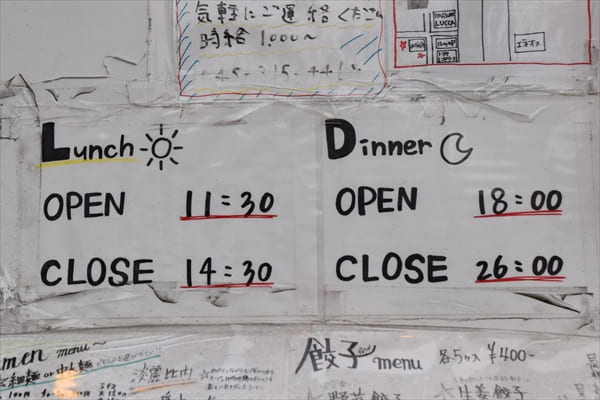 今回お邪魔した2号店「ラーメン&バー #HANABIYA」の営業時間