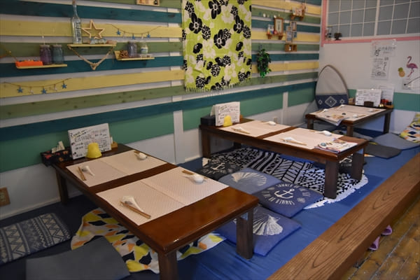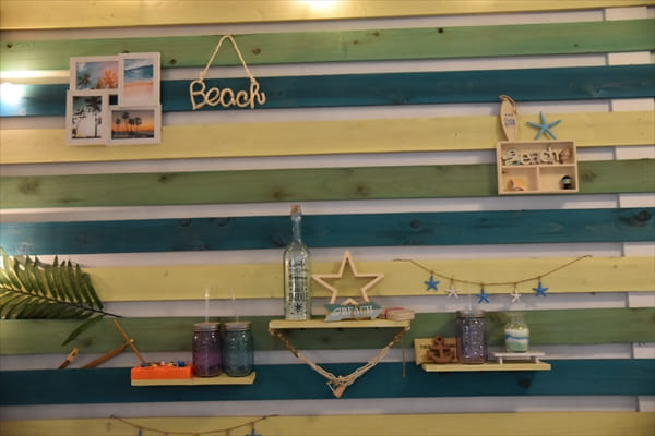 店内もハワイアンテイストの貝殻や雑貨などが置かれ、カワイイ内装になっている。