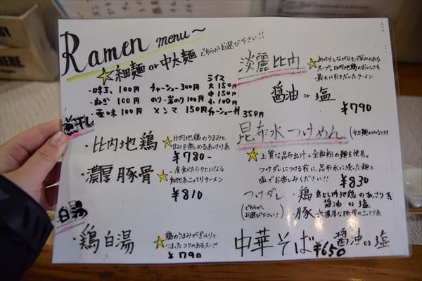 ラーメンのメニュー(クリックして拡大)
